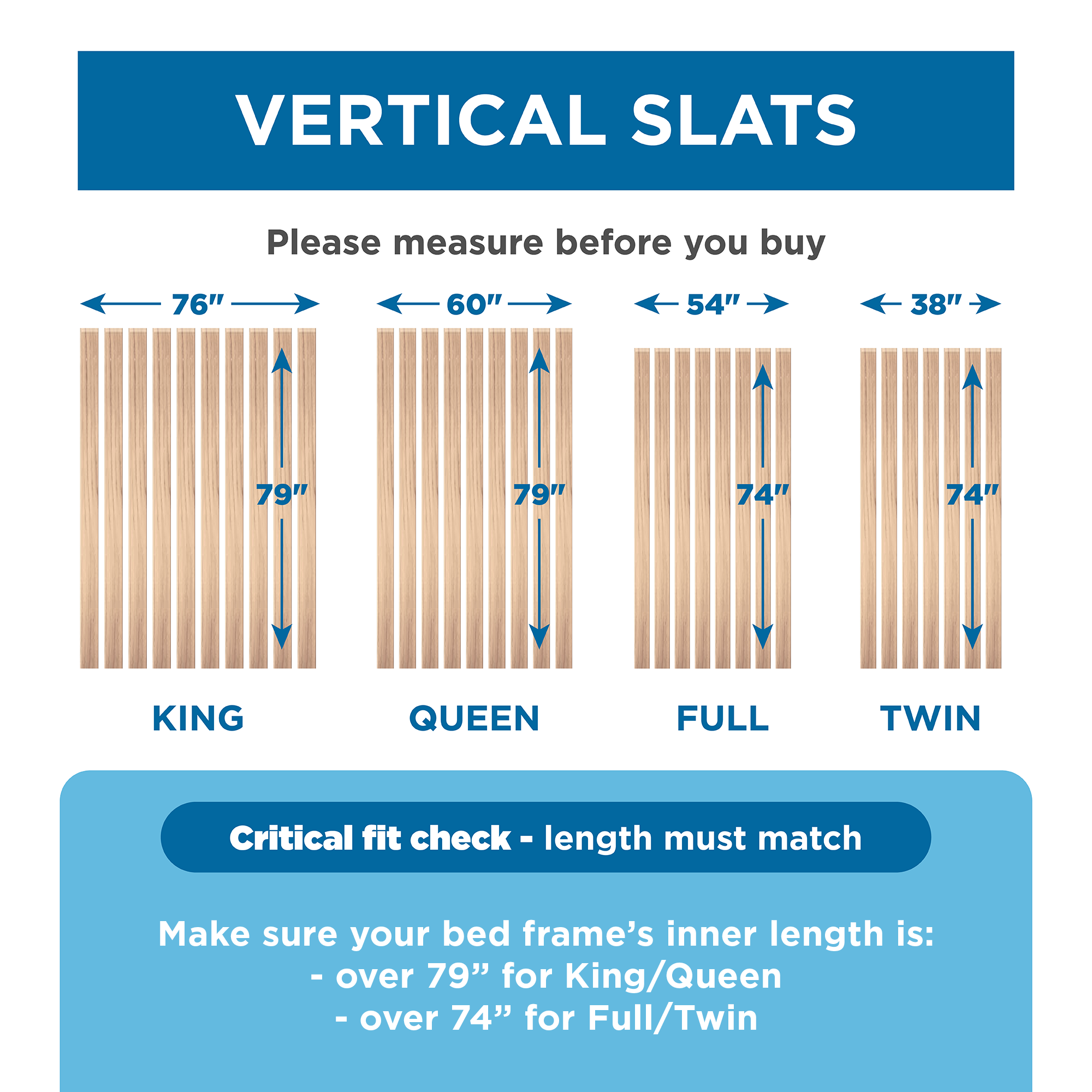 SlatSure Replacement Bed Slats - Vertical Wooden Slatted Bed Base Frame Support