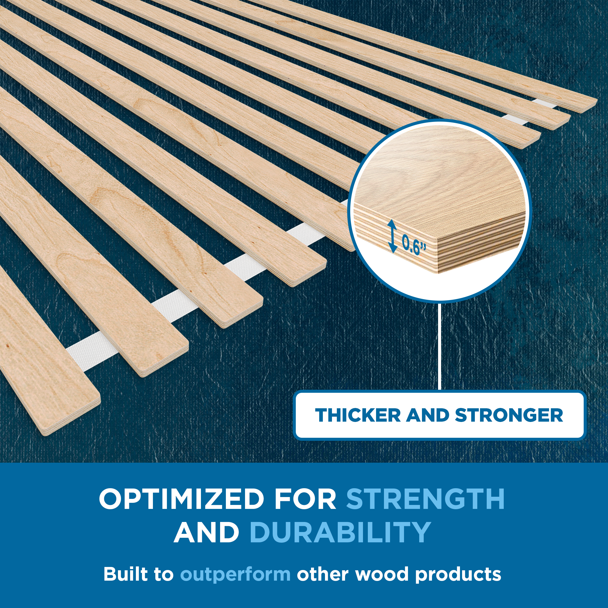Hygienic, Quiet, and Non-Slip Design - Unlike regular box springs or fabric-covered slats, SlatSure’s open wood design stays fresh and breathable. A durable Oxford fabric with silicone coating at the bottom prevents slipping, minimizes noise, and protects your frame from scuffs — for cleaner, quieter, longer-lasting sleep support.